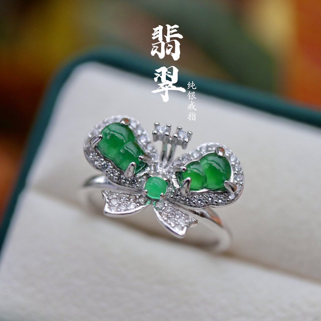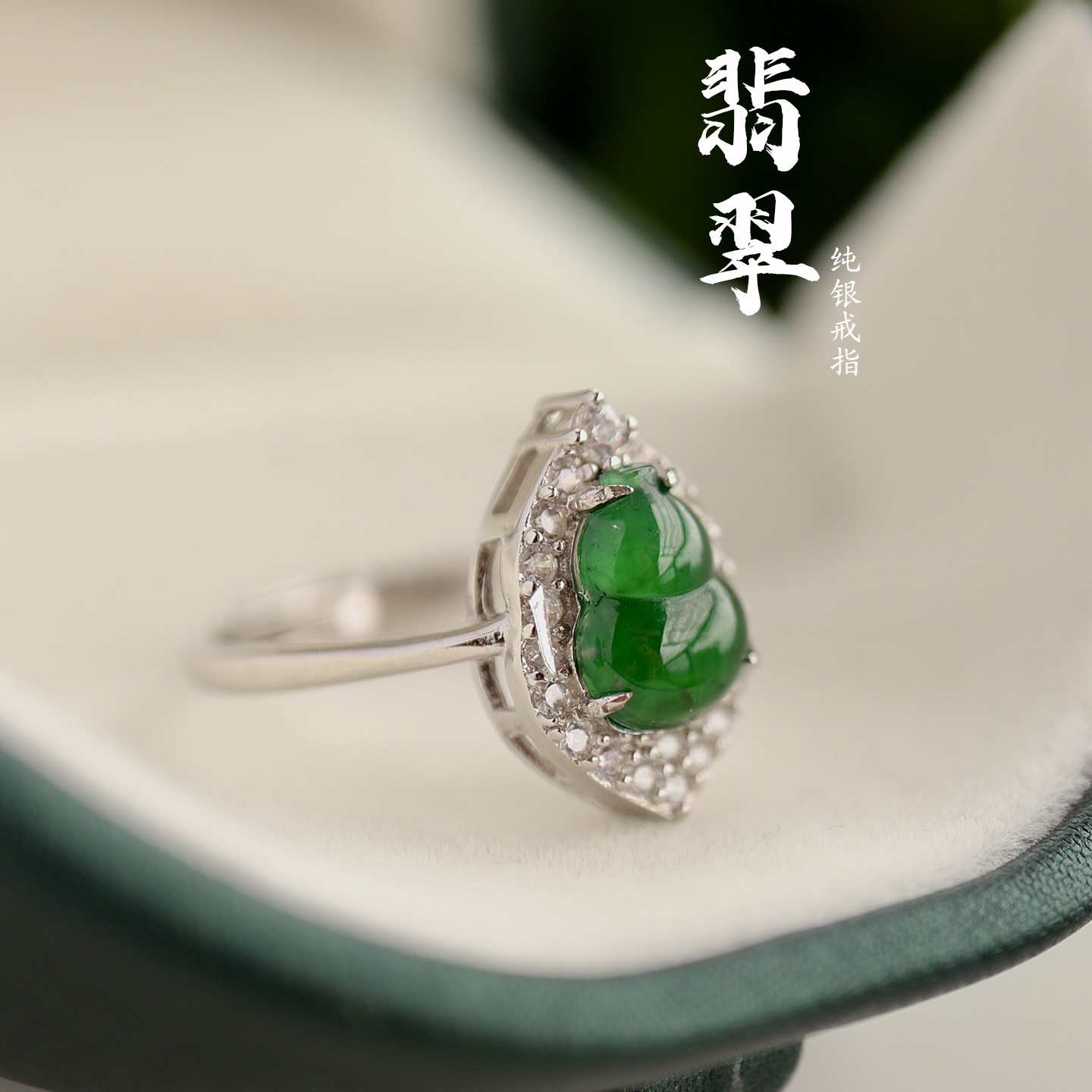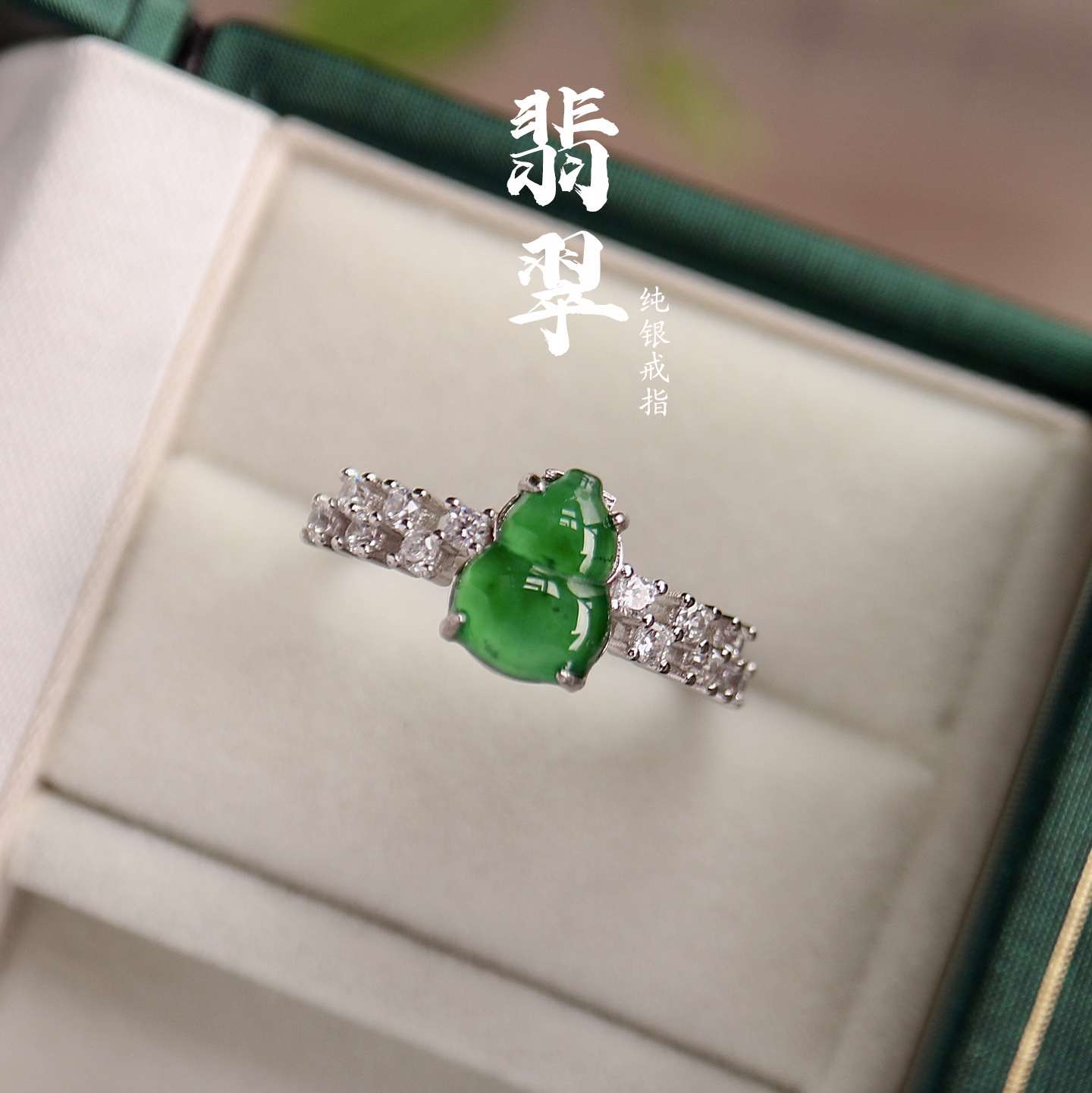 天然翡翠指輪S925銀はa類翡翠ひょうたん指輪をはめ込んでいます。