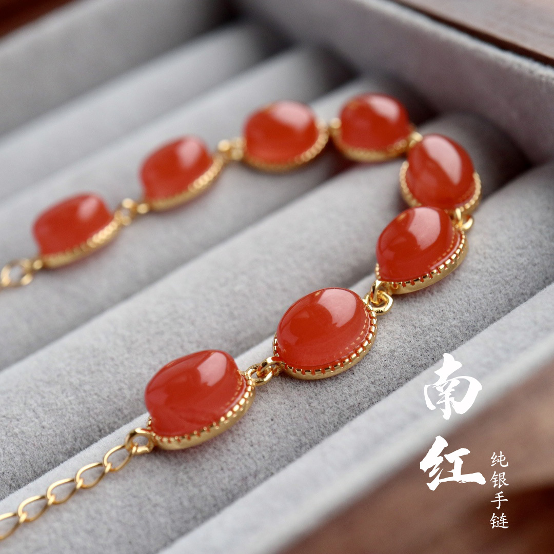 天然南紅ブレスレットS925純銀は桜の赤い卵の顔を象眼しています。