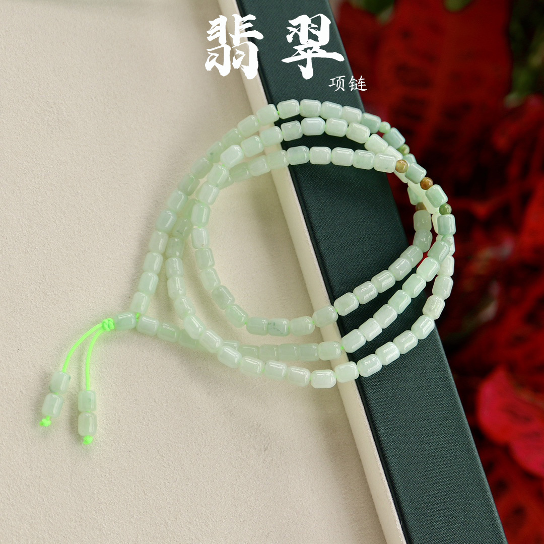 天然の翡翠のネックレスの女性の高級感の鎖のチェーンの長いタイプのチェーンのチェーンのチェーンの真の鑑定書のメインの桶の玉の毛の服のチェーン