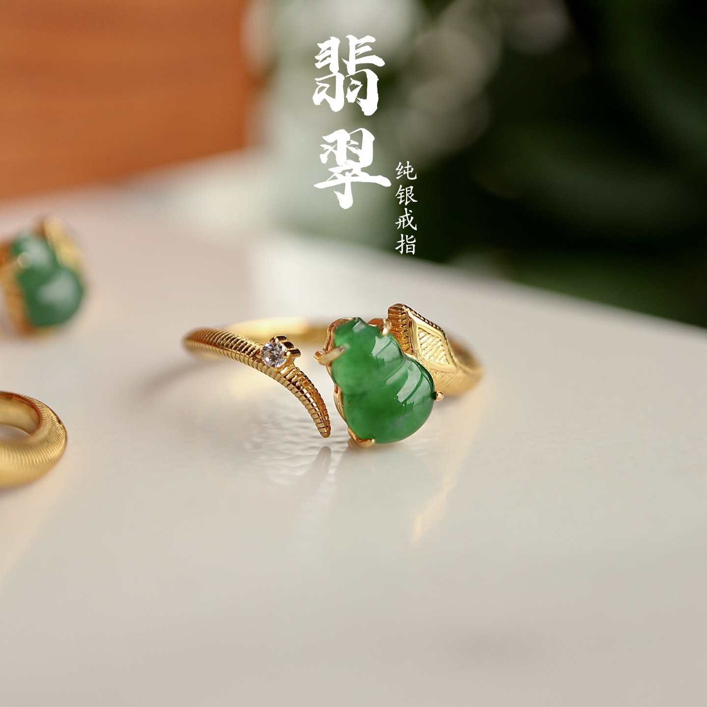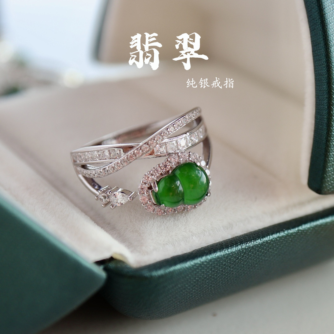 天然翡翠指輪925純銀a類素輪正品本物の女性戒は陽緑翡翠ひょうたん銀飾りを調節できる