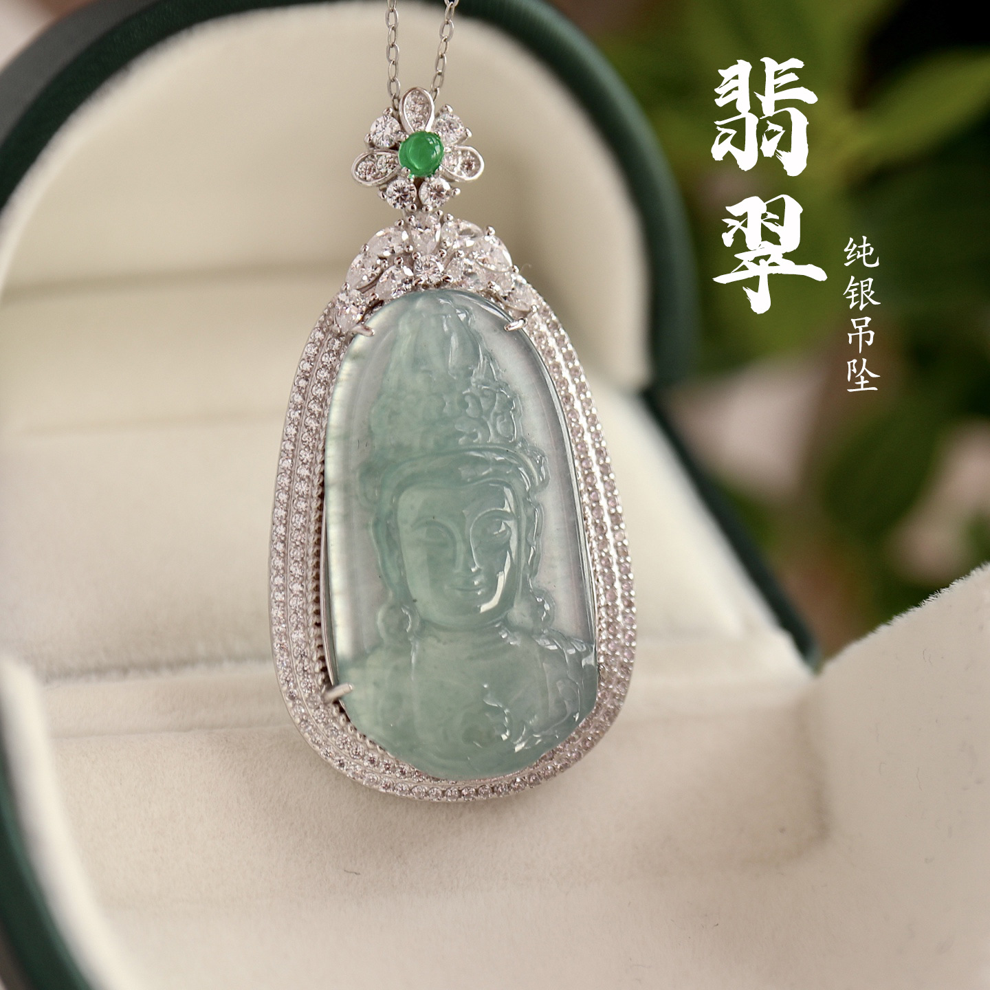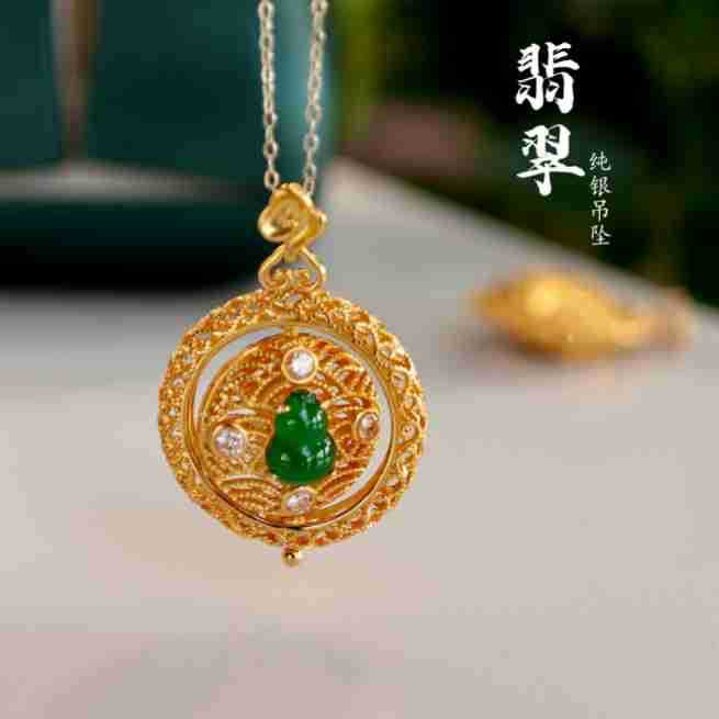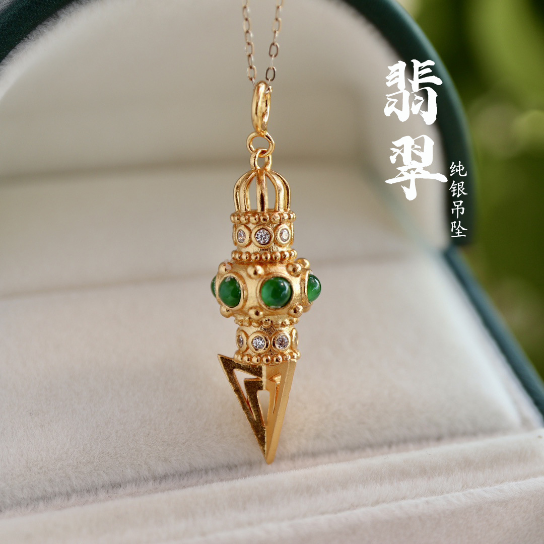 天然翡翠a類ペンダント真品単ペンダントS925銀高品真品証明書正品a材料陽緑翡翠金刚杵