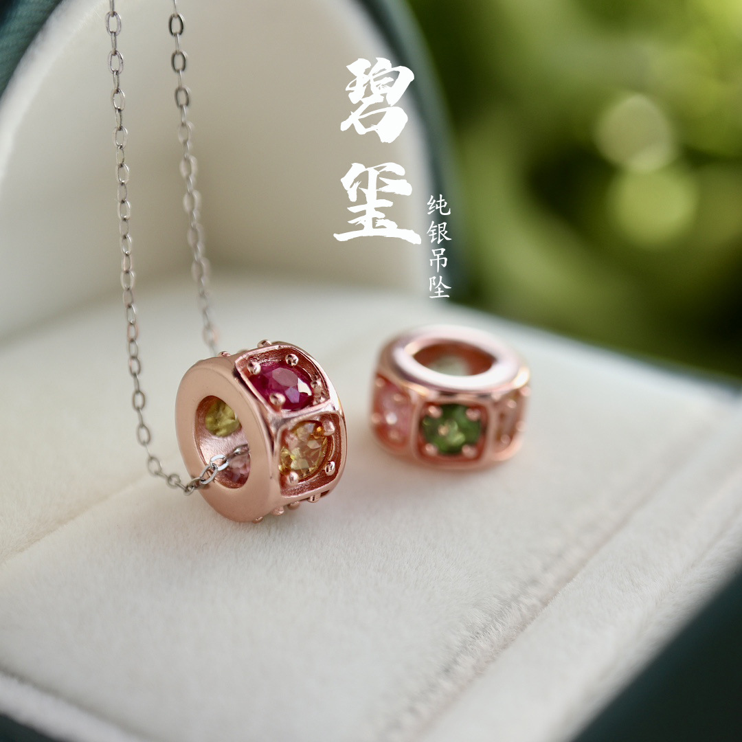 天然碧璽ペンダント925ドーナツペンダント925銀飾りバラ金アクセサリー高品ペンダント女性本物