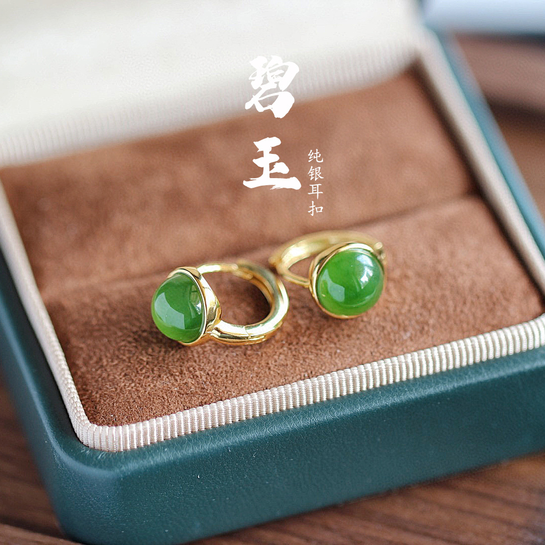 天然和田玉イヤリング真玉銀祥雲古風ファッション国潮高級純銀新高級感碧玉