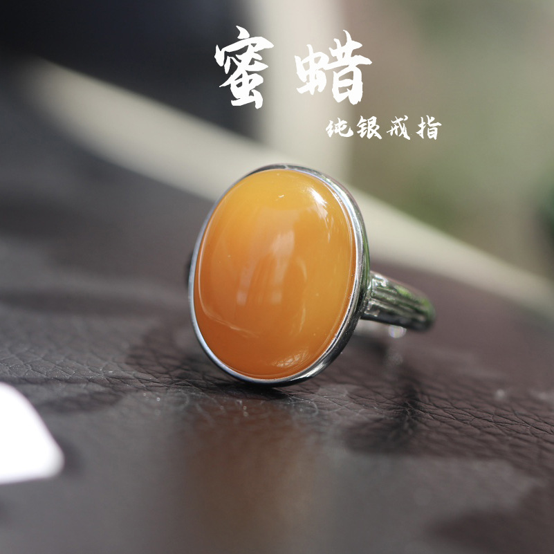 天然鶏油黄色蜜蝋リング 卵型 レディース S925純銀象嵌 鑑定書付き 新中式リング