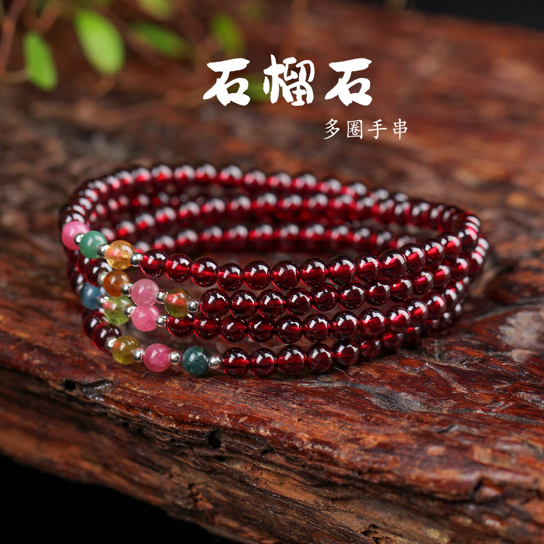 天然酒紅ガーネット4輪ブレスレット民族風規格品ハイエンドは銀珠真手串高品浄体を持っています。