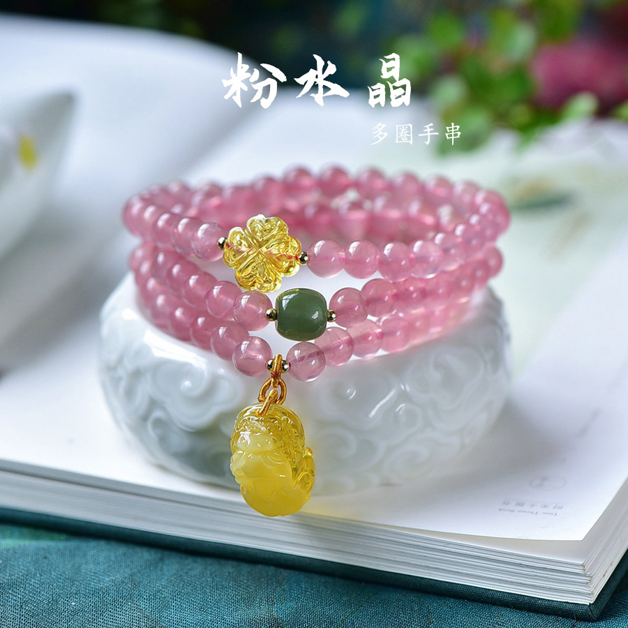 天然ピンク水晶手串天然招桃花高品クロスボーダー水晶珠デザイン金ブレスレット正規品高級感
