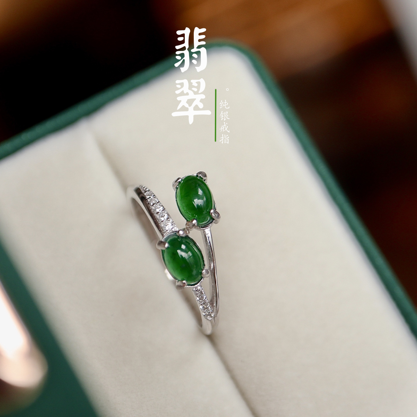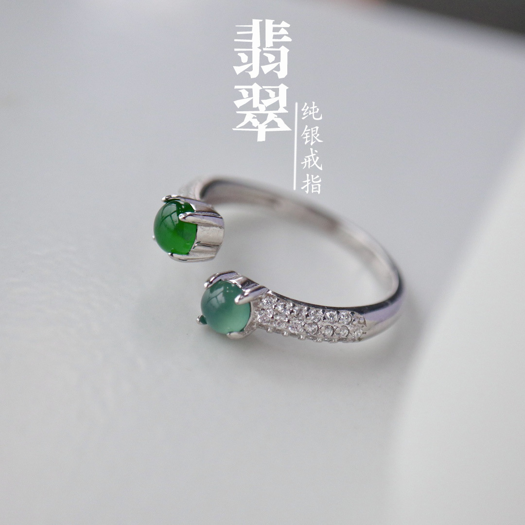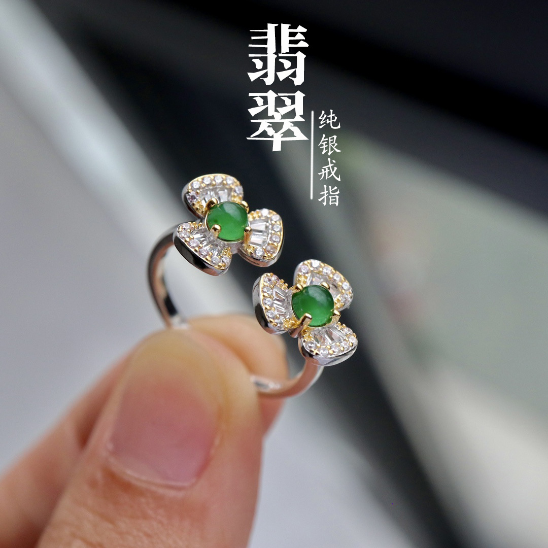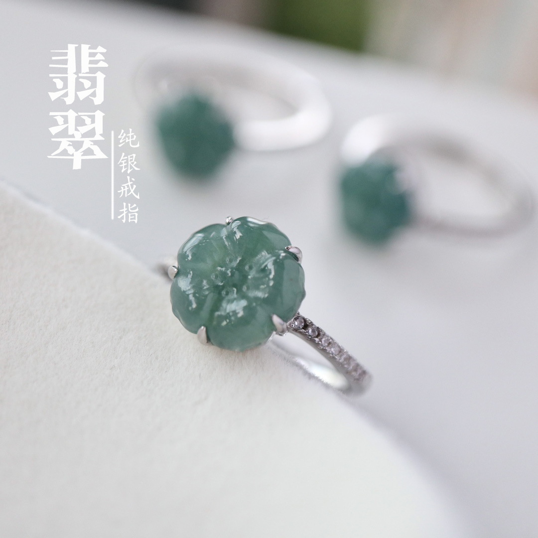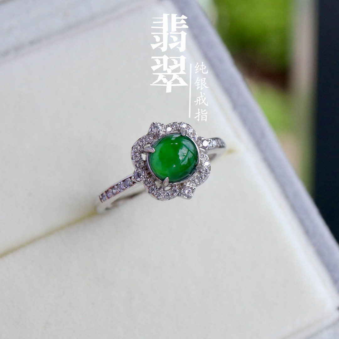 卸売り天然翡翠指輪925純銀花a類素輪指環純正品a材天然真翡翠証明書
