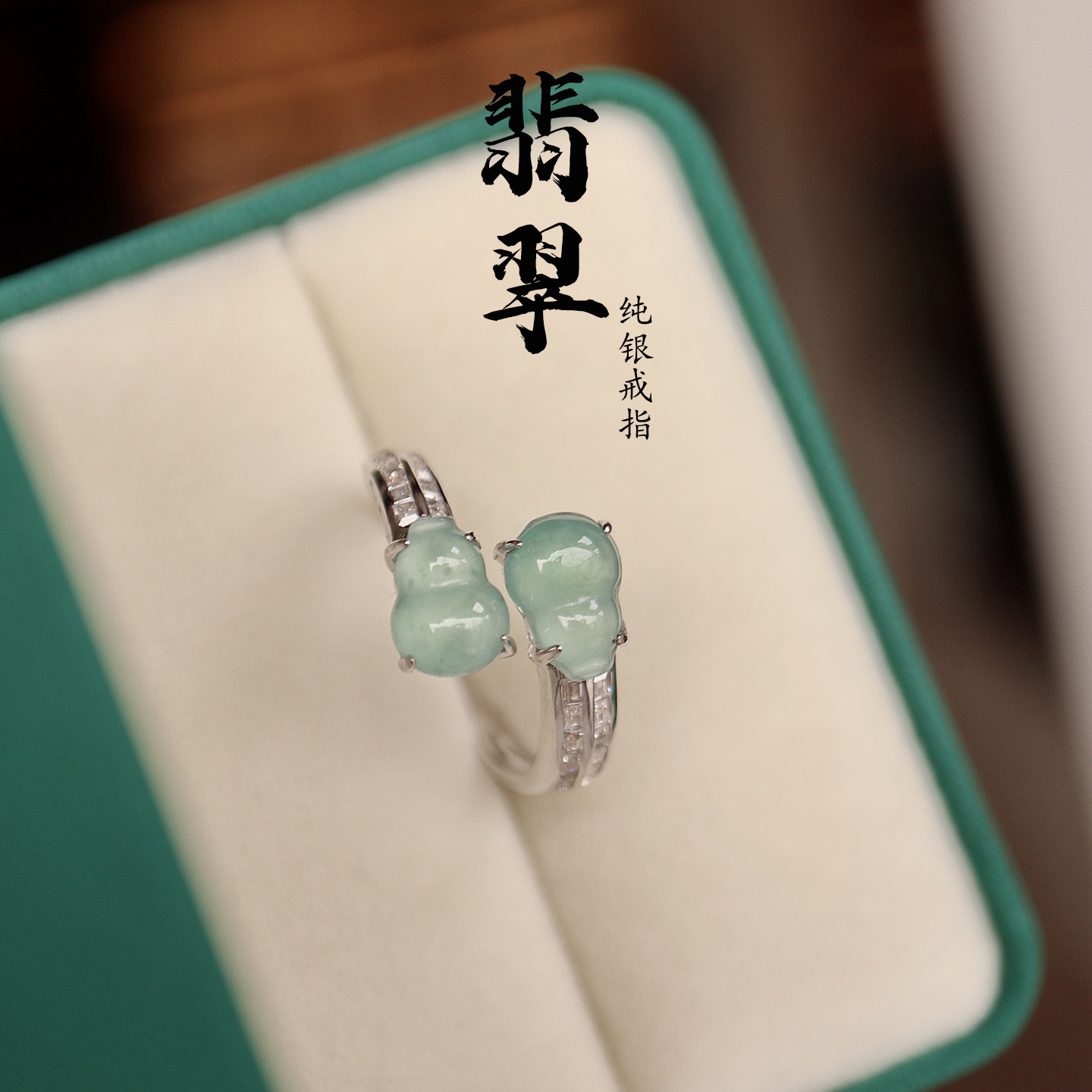 天然の翡翠のヒョウタンの指輪925銀はaの材料の翡翠の指輪の女性の危険な材料の翡翠の本物をはめ込んで鑑定の証明書を出すことができます。