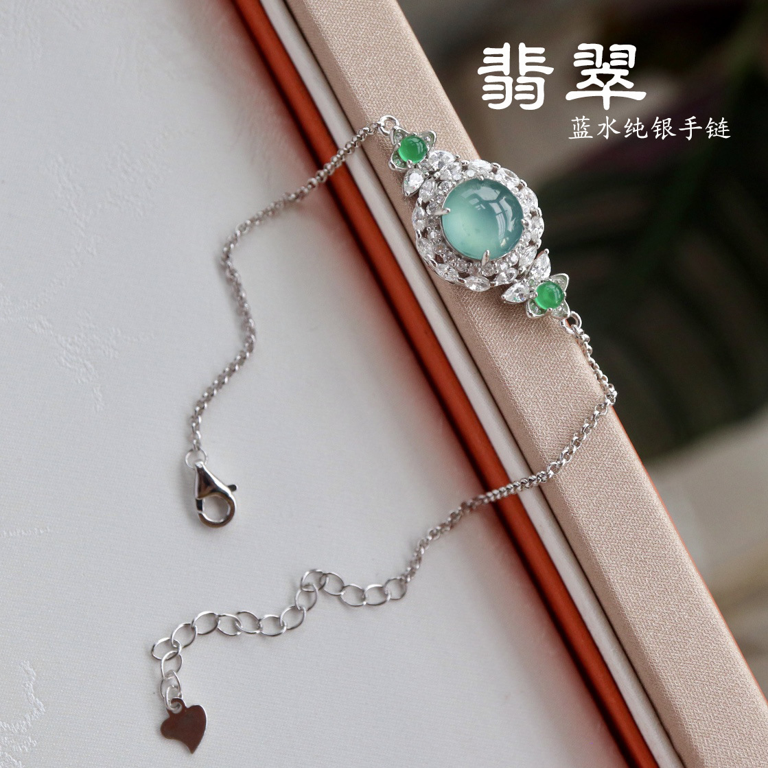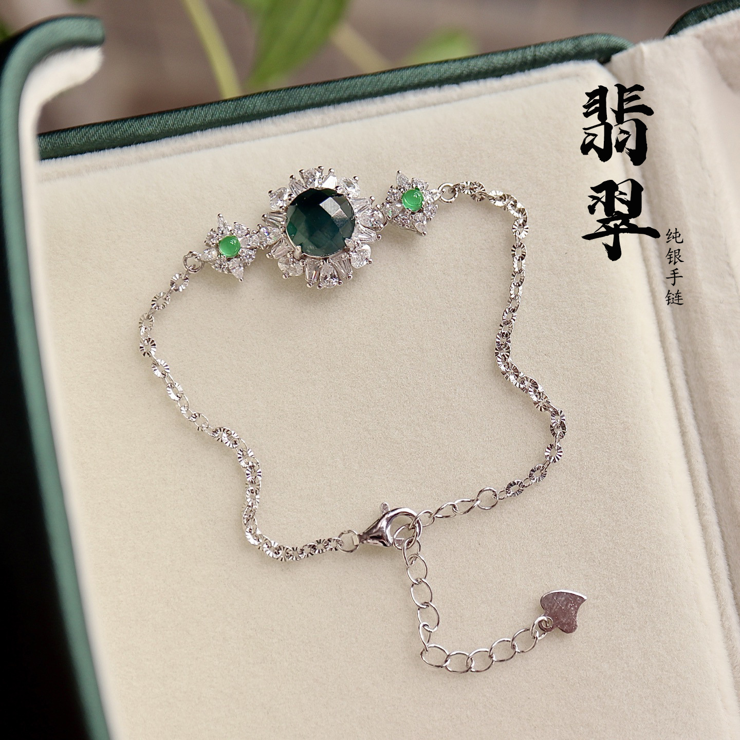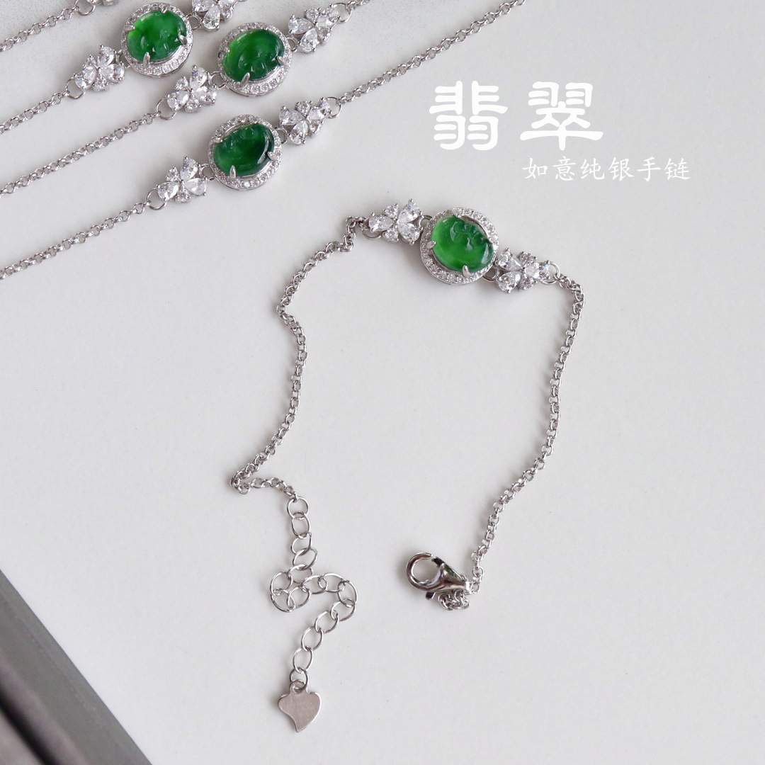メーカー卸売り天然翡翠如意ブレスレット色落ちしない女性夏925銀はa類天然真危険材料如意
