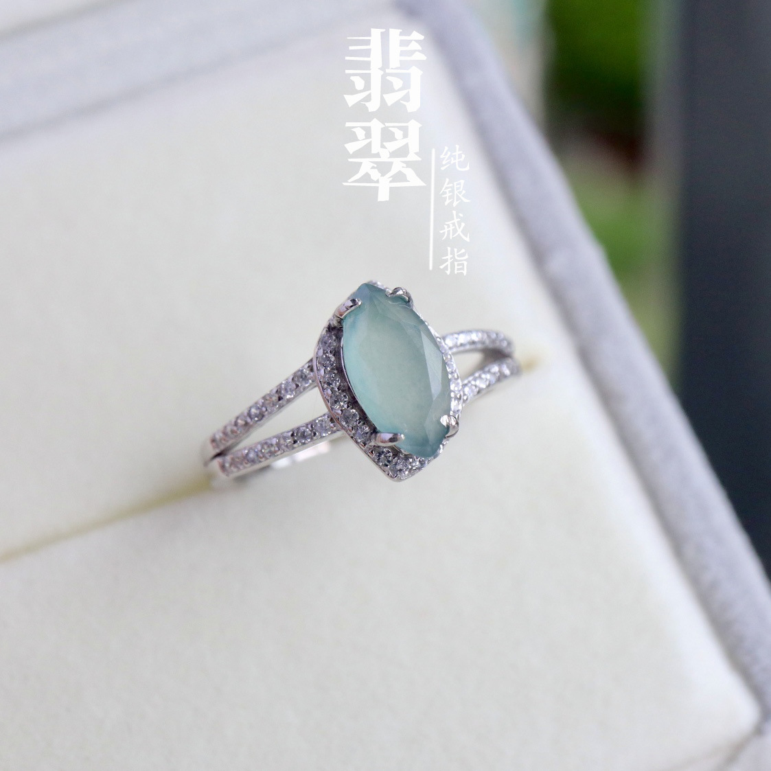 天然の危険材料の青い水の翡翠の指輪のs925銀の装飾はa類の素のリングの規格品のa材料の翡翠の証明書を調節することができます。