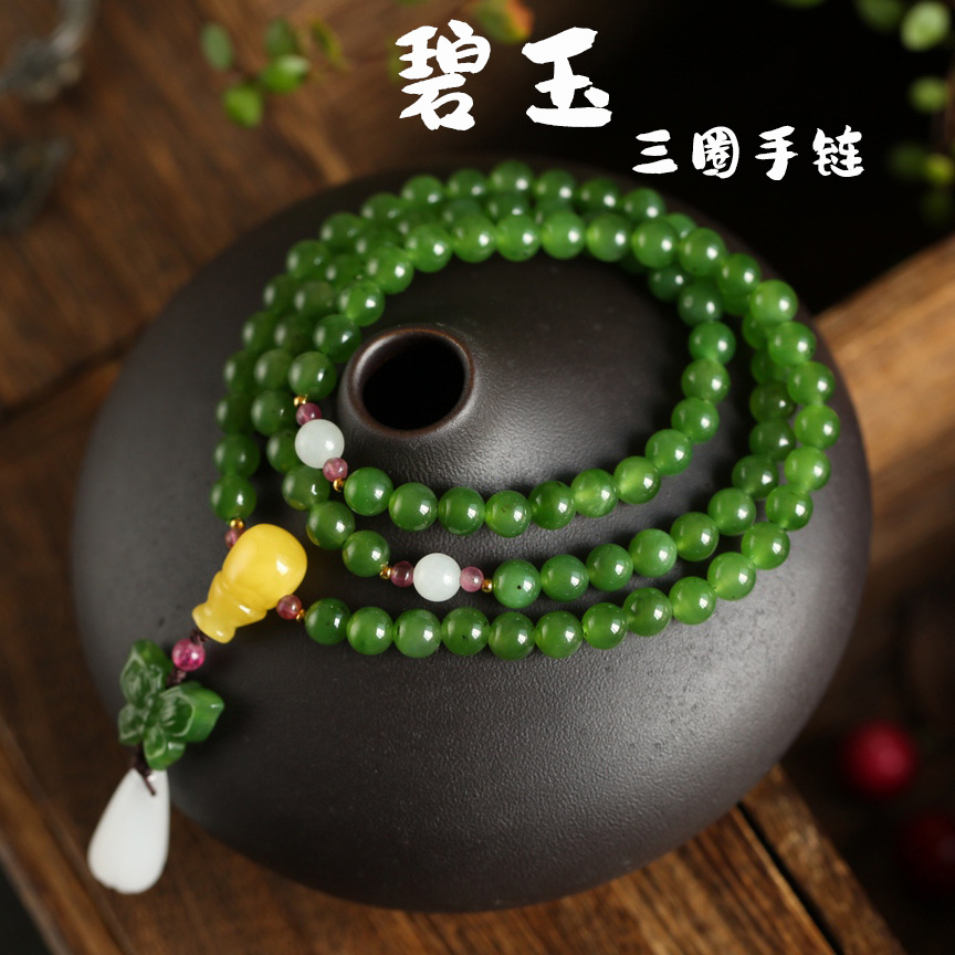 工場卸売りロシア材料天然碧玉手串高品と田玉女金三輪鎖碧玉多輪手串新