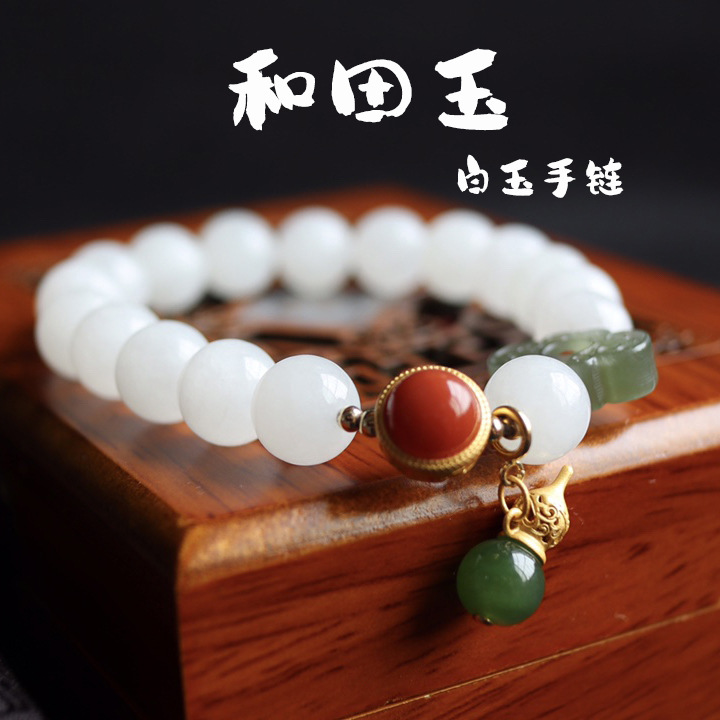 工場卸売り天然和田玉手串白玉和田玉ブレスレット女性高級感宝飾品プレゼント代理