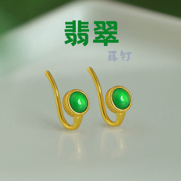 天然翡翠a類耳フック925純銀モザイク危険材料高品正品翡翠耳釘本物は証明書を出すことができる