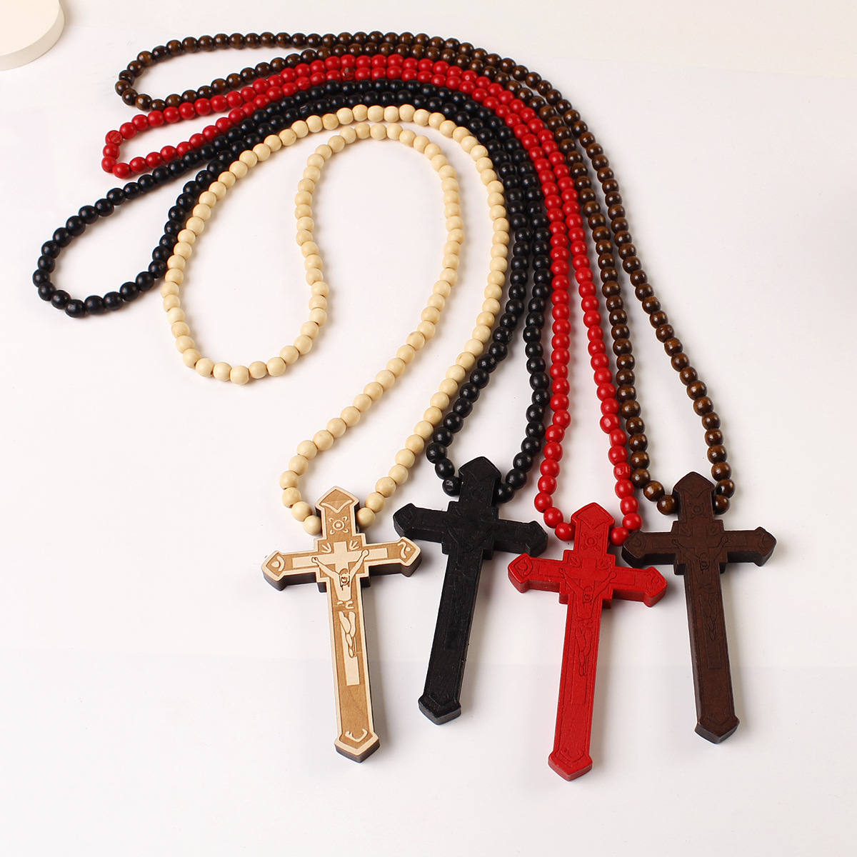 貿易ホットスポットクロスロング男性と女性のウッドビーズネックレストレンディなクールなナイトクラブファッションウッドネックレス