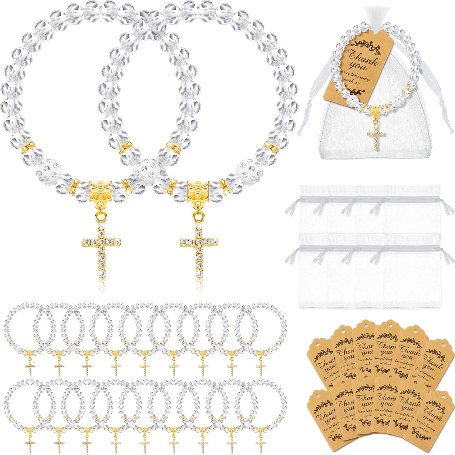 Wish速売通人気愛ペンダントブレスレット銀色模造真珠クロスブレスレット洗礼数珠ビーズ