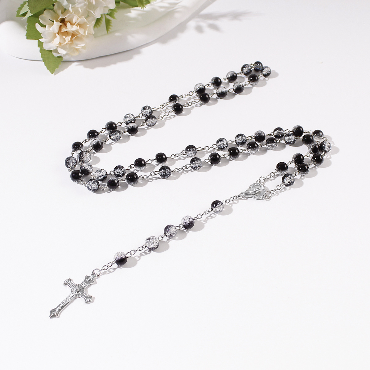 クロスボーダー8mmガラス模造真珠クロス数珠ネックレスアクセサリー男女ロング型祈祷数珠メーカー卸売り