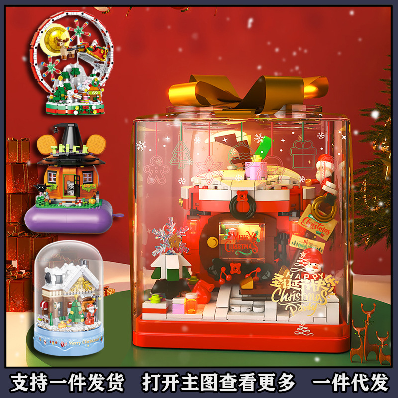 クロスボーダーのクリスマスの積み木662024女子学生のクリスマスのプレゼントの回転のオルゴールの置物の子供の盛り合わせのおもちゃ