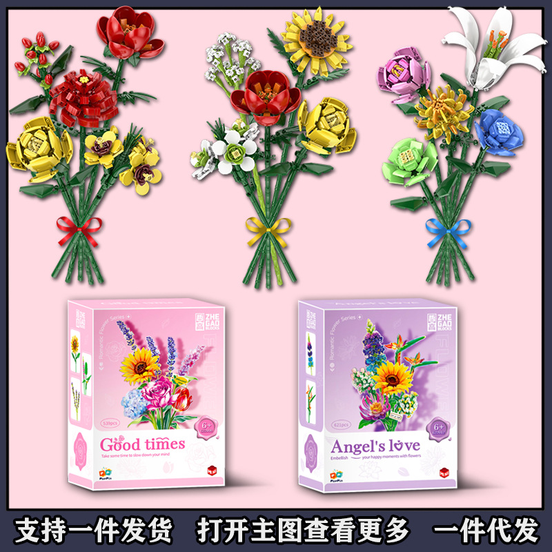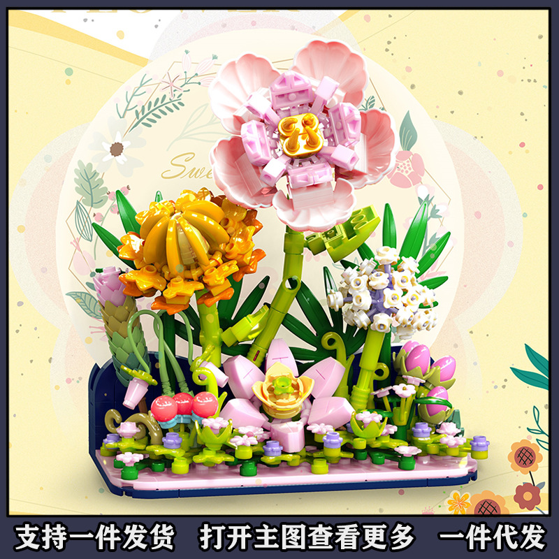 クロスボーダー積み木バラの花束622012多肉鉢植えの小粒のアイデアを組み合わせて飾ります。
