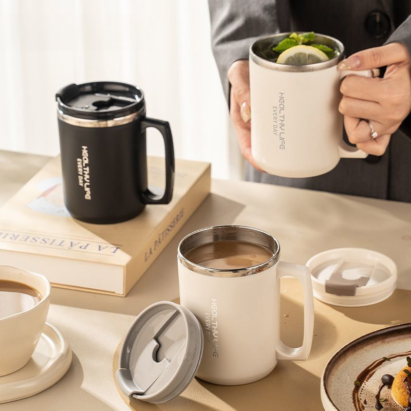 ステンレス鋼マグ 304 ウォーターカップホームオフィス女性コーヒーカップ高価値男性ティーカップ蓋付き