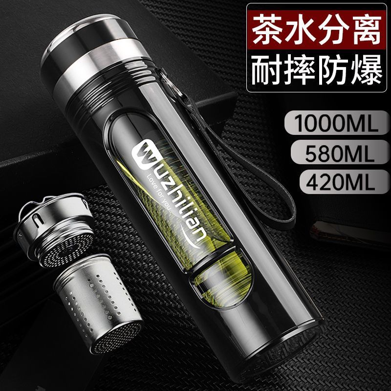 大容量の落下防止ガラスポータブル二重層ウォーターカップ蓋付き男性と女性のオフィス高温耐性茶水分離カップ