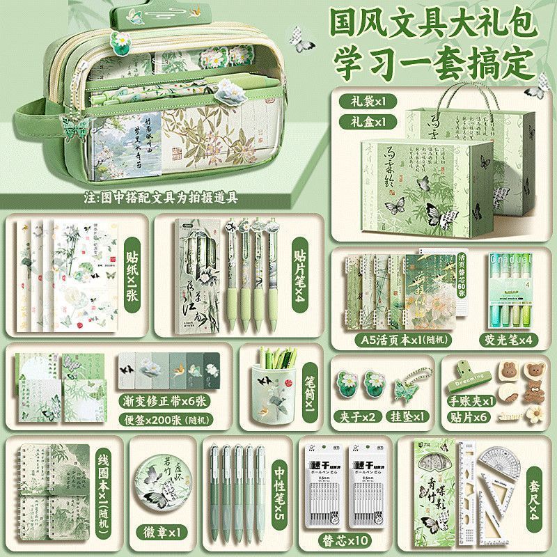 国風の筆の袋の女子学生の2025新型の女子学生の高い顔の値の古風の文房具のスーツの水墨の風