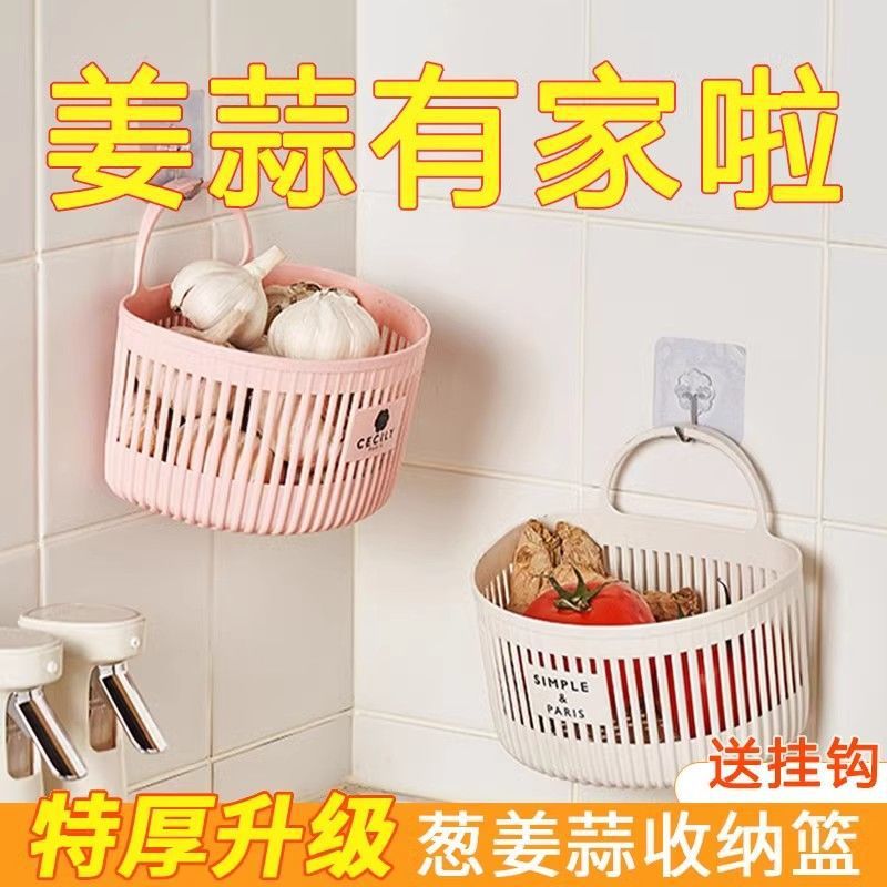 キッチン玉ねぎ、生姜、ニンニク収納バスケット、小さなハンギングバスケット収納ラック、バスルームハンギングバスケット、バスルームベッドサイド壁掛け収納バスケット