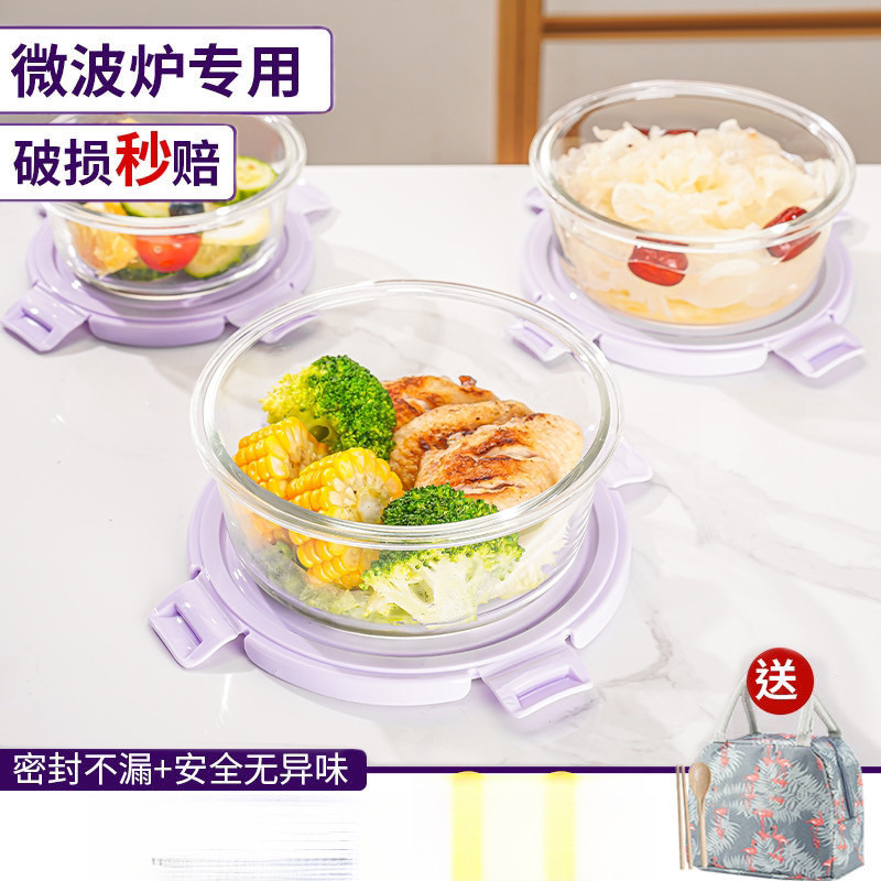 丸型ガラスボウル クリッパーボックス ガラス弁当箱 電子レンジ対応弁当箱 蓋付き オフィスワーカー