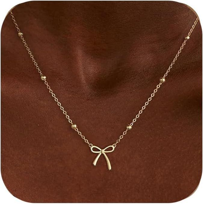 小さなかたちの中空リボンペンダントネックレス、シンプル、新鮮、甘くてかわいい、鎖骨チェーン、ファッショナブルなビーズチェーンジュエリー、女性用