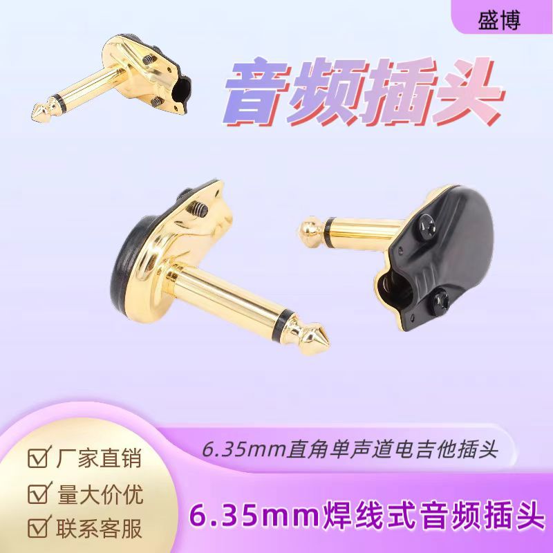 6.35mm直角モノラルエレキギタープラグ90度エルボ6.5大二芯オーディオマイクアンプコネクタ