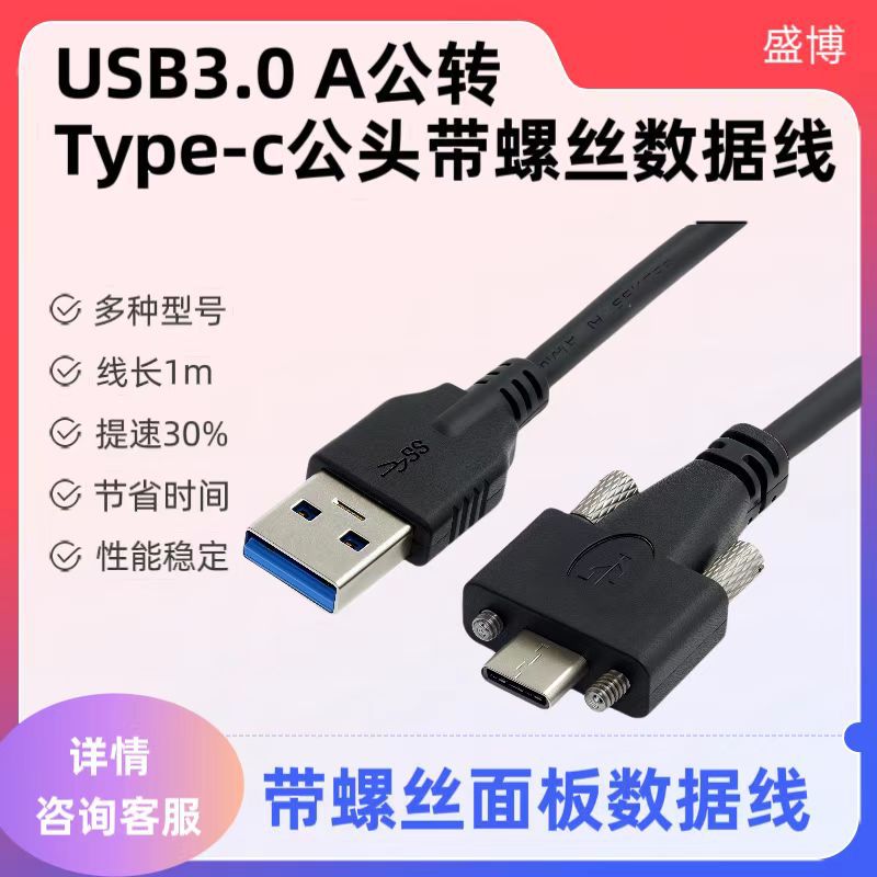 Usb3.0 a公転TYPE-C雄ヘッドねじ付きデータケーブルUSB-C3.0ねじ付きパネル付きデータケーブル