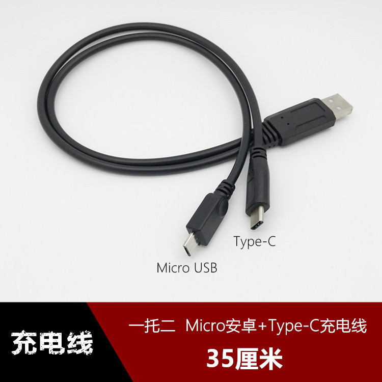 安卓microusbプラスtype-c携帯電話一引き二通用一分二一体型充電ケーブル35cm