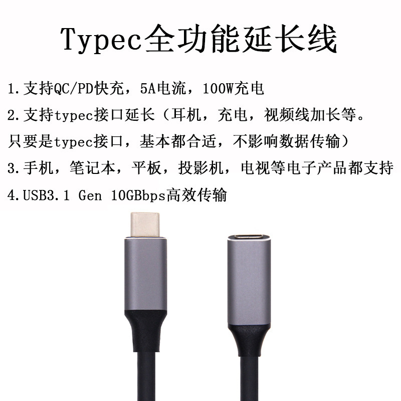 Typec延長線公対母usbc3.1gen2データ線10gbs拡張ドックc口全機能延長線