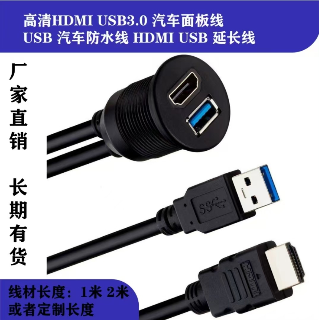 Hd hdmi usb3.0自動車パネルケーブルusb自動車防水ケーブルhdmi usb延長ケーブル