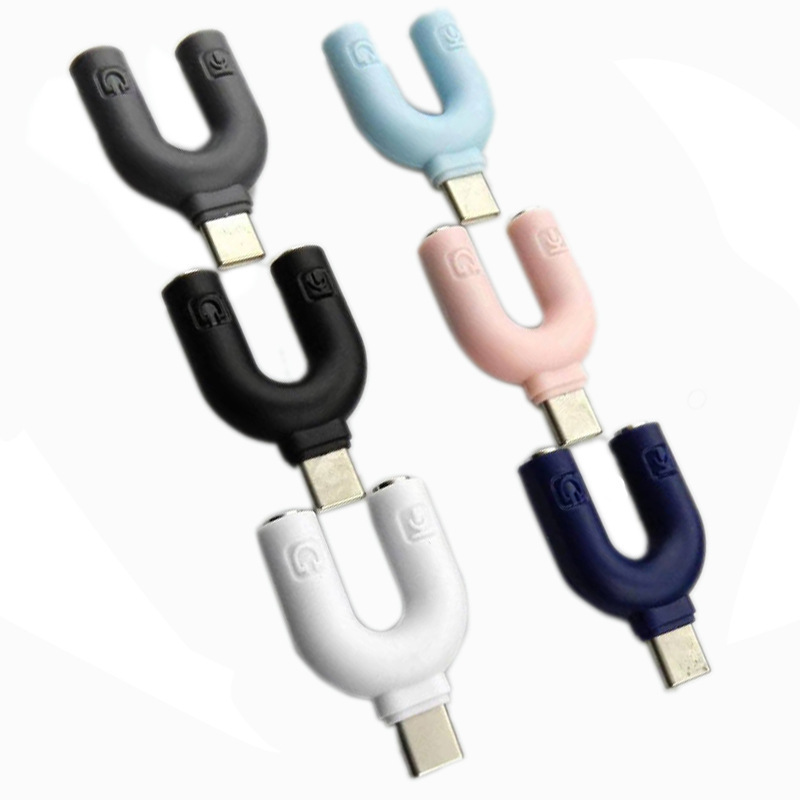U型TYPE-Cイヤホン変換コネクタandroid汎用type-c変換3.5mm一分二オーディオ変換器変換