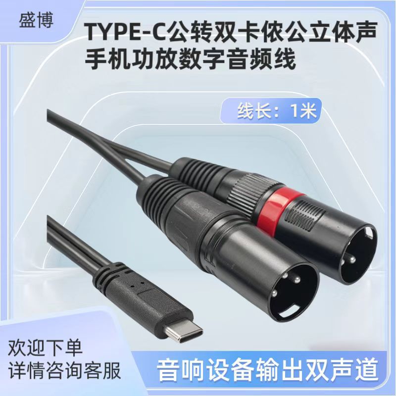TYPE-Cの公転の双カノンのオスのステレオの携帯電話のアンプのデジタルのオーディオケーブルの音響の設備は双チャンネルを出力します。