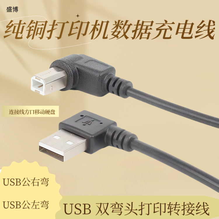 純銅プリンタデータ充電ケーブル角口モバイルハードディスクusbダブルエルボー印刷中継ケーブル