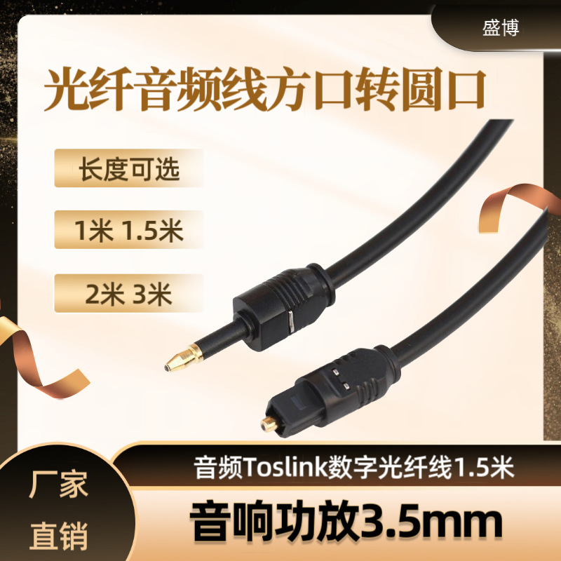 光ファイバーオーディオ線角口回転円口オーディオアンプ3.5mmオーディオToslinkデジタル光ファイバー線1.5メートル