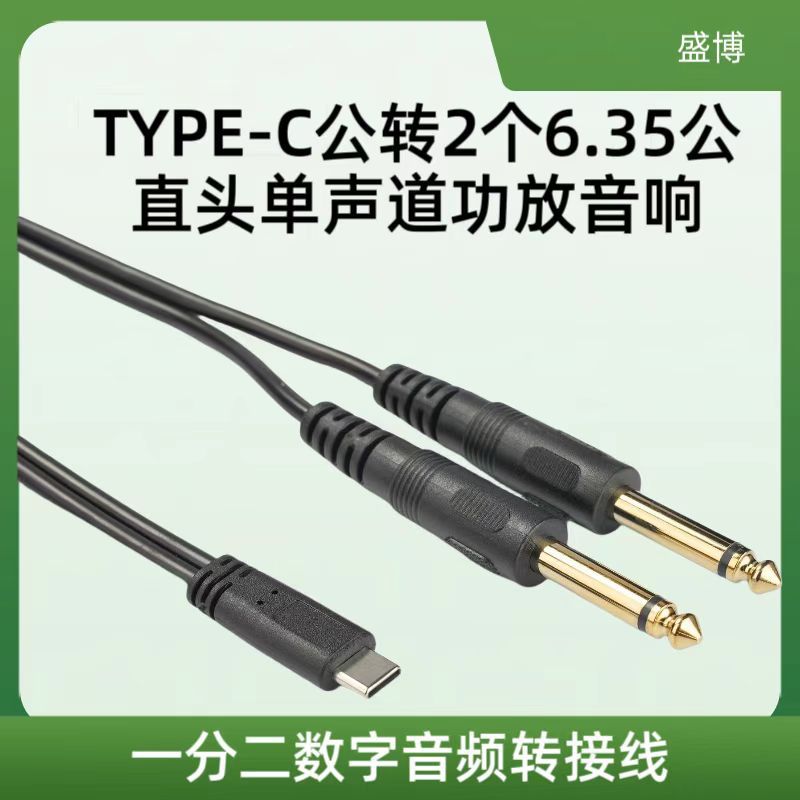 Type C公転2個6.35公直頭モノラルアンプ音響一分二デジタルオーディオケーブル