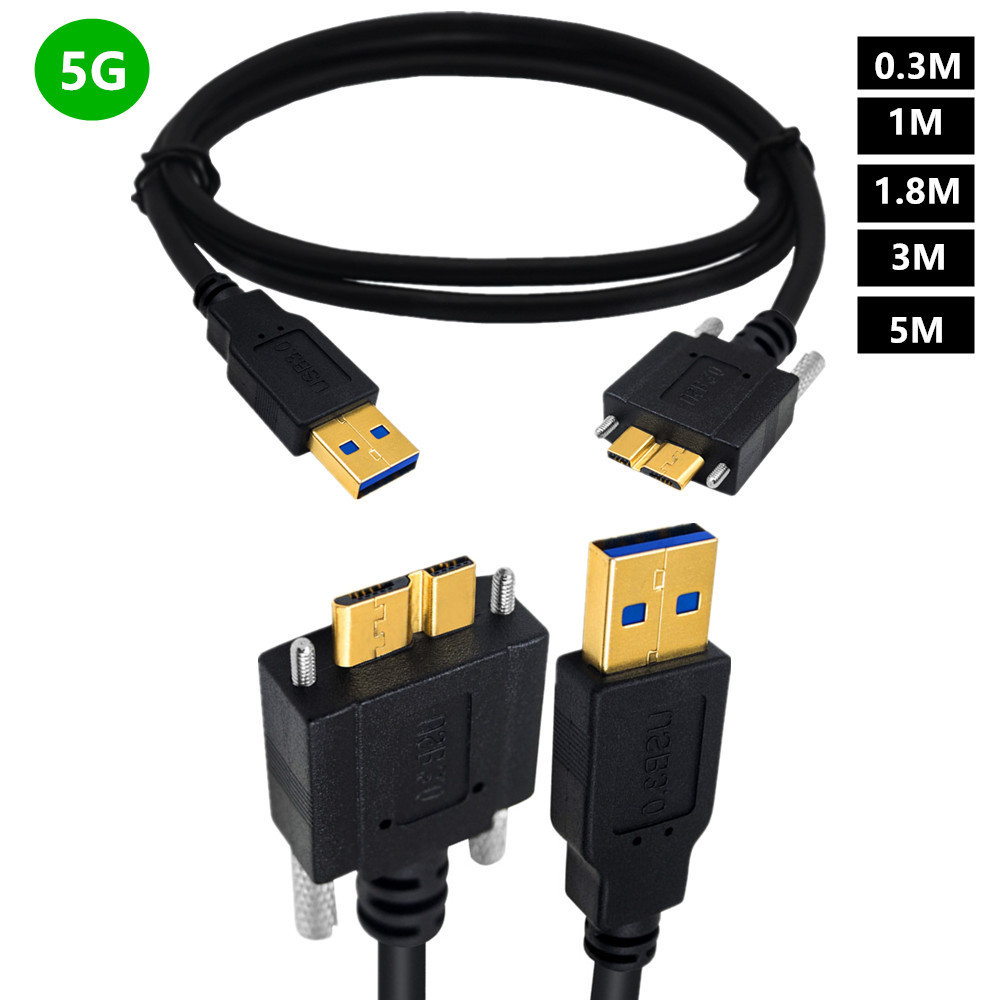 金メッキ3.0線工業カメラhddケースプレーヤーUSB AM対マイクロB固定ねじ付きデータケーブル