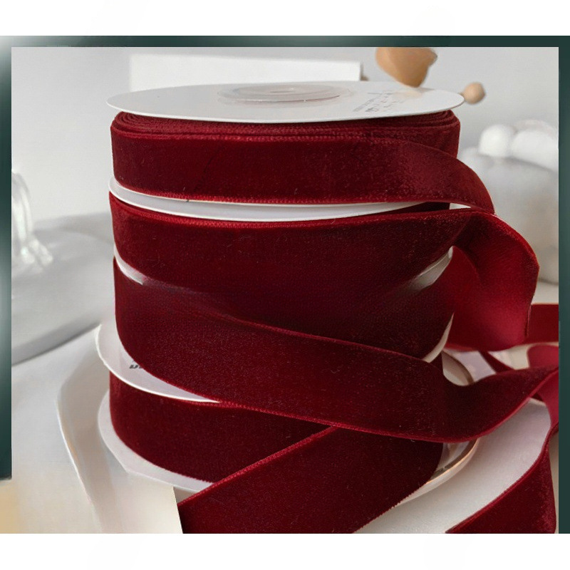 ワインレッド片面両面ベルベットリボンベルベット植毛リボン手作りリボンブーケ包装ギフトベーキングバッグ