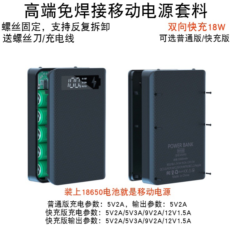 QC 高速充電 5 セクション溶接不要のモバイル電源 DIY キットシェルパワーバンクセットリムーバブル 18650 バッテリーボックス