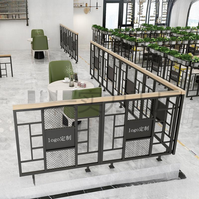 鉄芸レストランのフェンスバーのミルクティー店の通路を遮断してガードレールの花棚を飾りましょう。