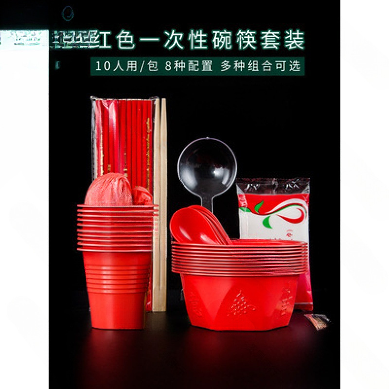 硬質食器セット家庭用食器ボウル結婚式宴会結婚式使い捨て赤い組み合わせプラスチック商業増粘