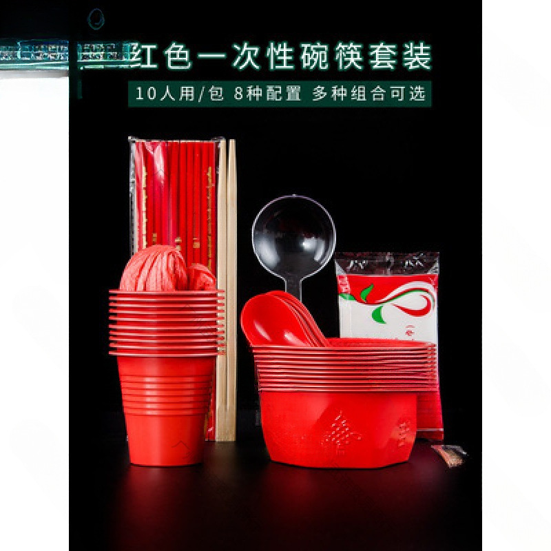 ボウルと箸セット商業用厚みのある家庭用組み合わせハードウェディングボウルウェディングプラスチック使い捨て赤宴会食器