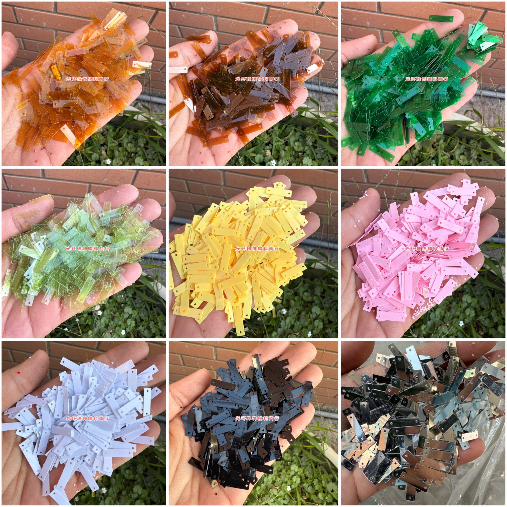 4x15mm長方形の両穴の緑色の透明なスパンコールの長いコーヒー色のビーズの小さい四角形のスパンコールの服装の補助材料