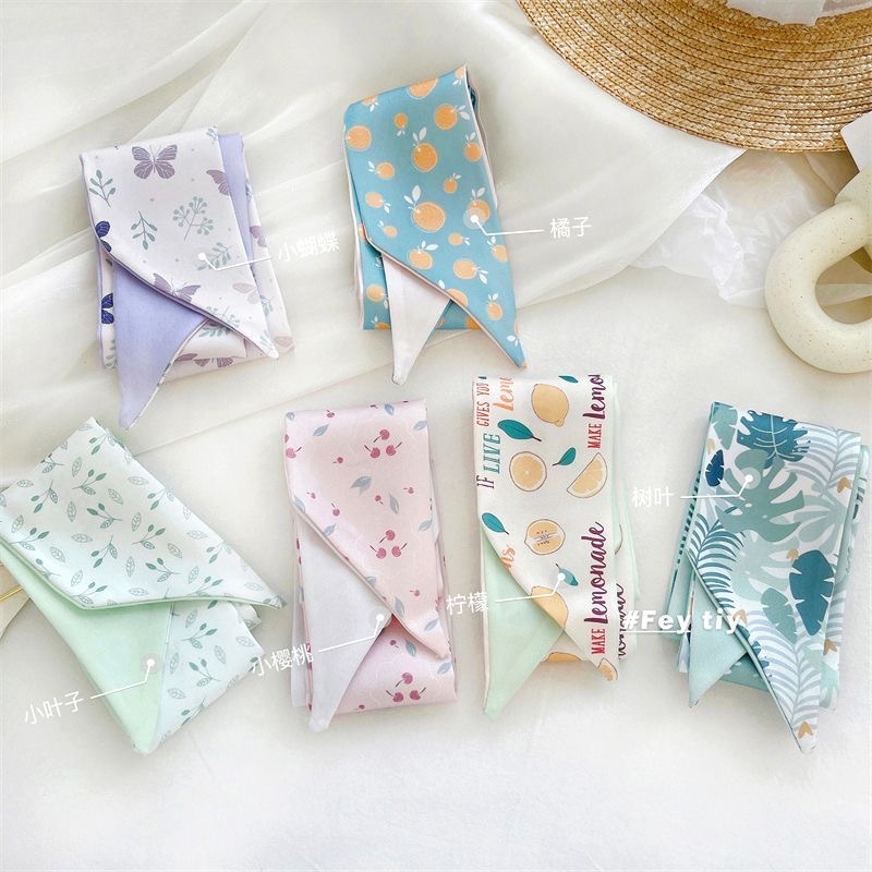髪の両面結び、フレッシュレター、小さなシルクスカーフ、夏用ヘアバンド、リボン、フルーツヘアバンド、フローティングスカーフ