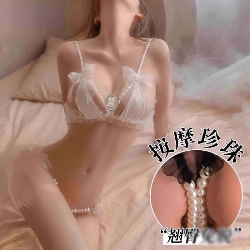 セクシー下着女性レースベッド透視誘惑パジャマ晴趣味カップル味真珠三点制服純欲