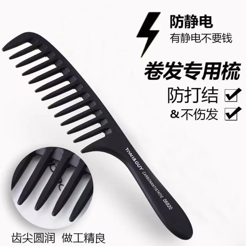 トニーカバーの専門の美髪は厚い静電気防止の黒いリンゴの取っ手の櫛の散髪の長い髪の広い歯のカールの櫛を作ります。