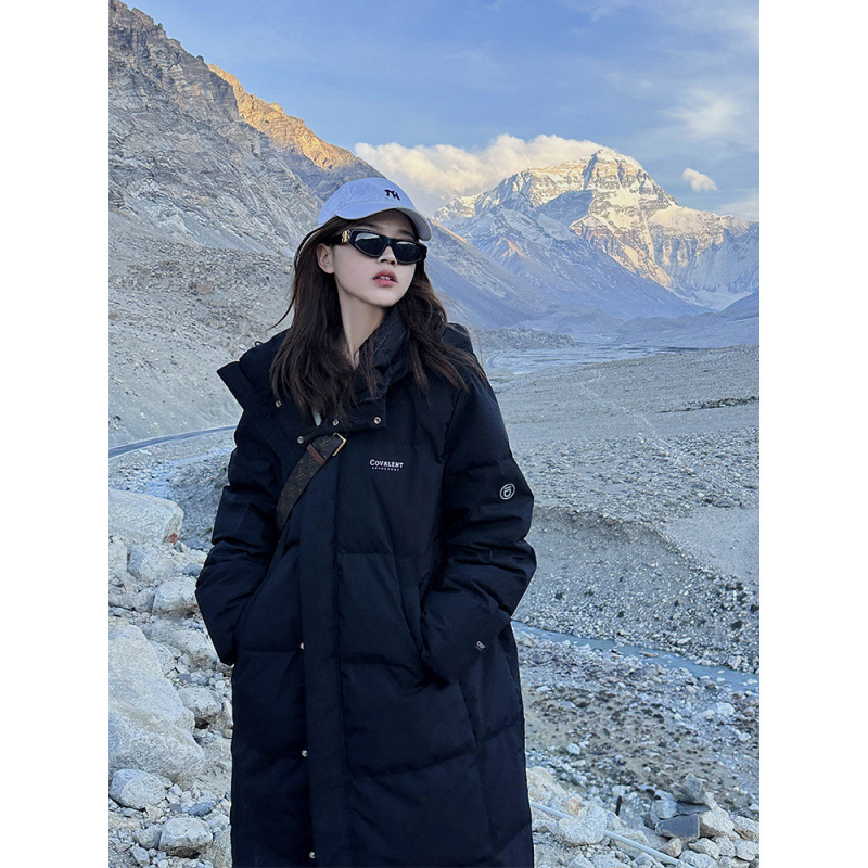 ダウンコットンジャケット 2025 新しいロング膝上大きな毛皮の襟のコットンジャケット厚くファッショナブルで多用途な冬のコットンジャケット