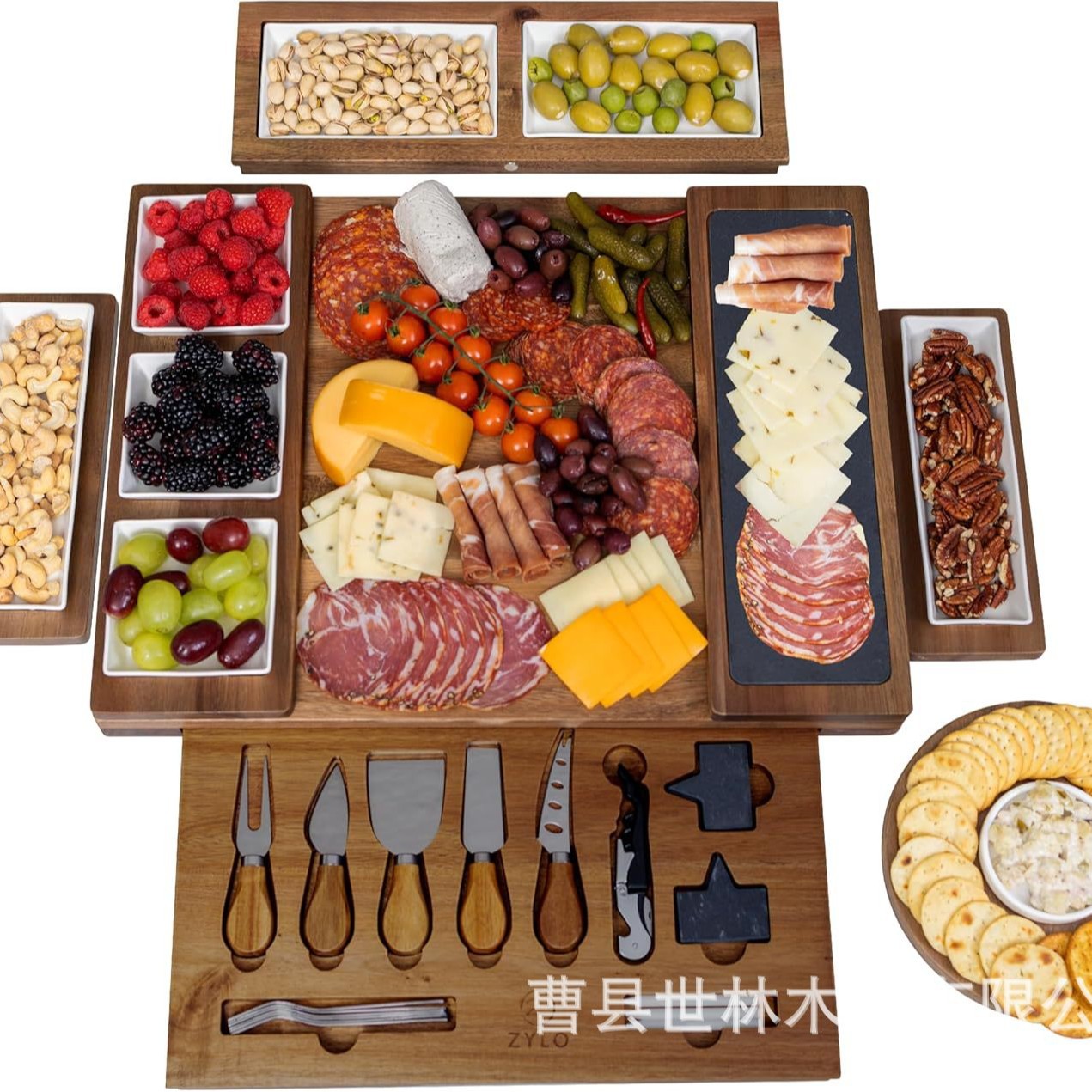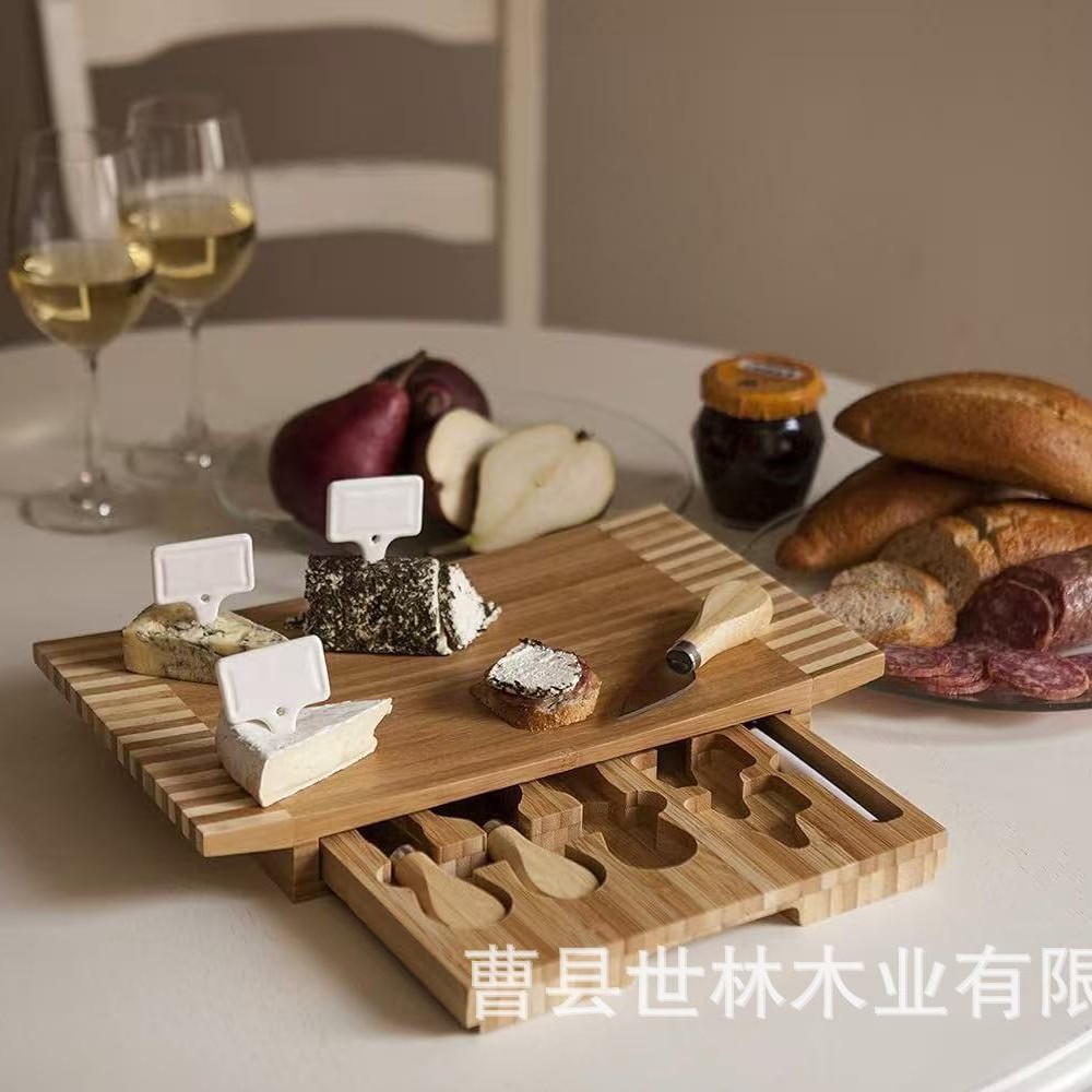 竹木チーズまな板セット引き出し付きチーズピザ板木製円形まな板パン菓子洋食皿
